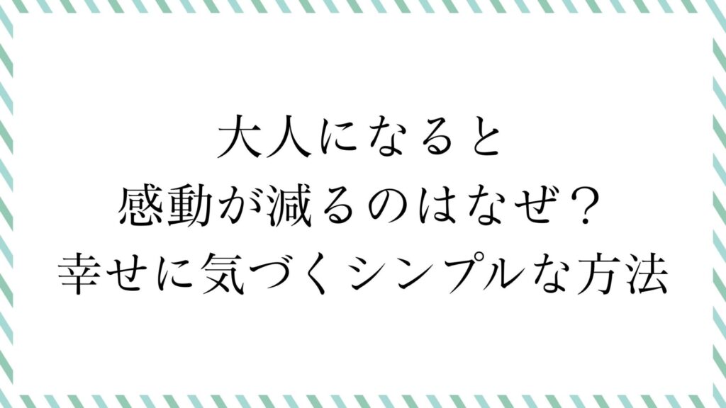 大人になると感動が減るのはなぜ?幸せに気づくシンプルな方法